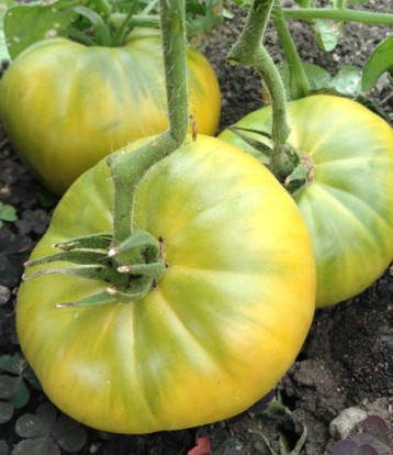 Another fabulous variety from Tom Wagner. Twice the size of Green Zebra and somewhat sweeter, this heirloom from about 20 years ago was named for Tom's friend Rita DeClercq of Belgium. Hearty plant produces fruits of green and gold striping, about 8 to 12 ounces. Abundant production, this perfect-for-sandwich size tomato is also fabulous in salads and for sauce. A deliciously distinctive tomato -- worth a sunny spot in your garden.
