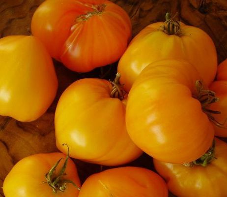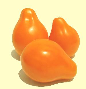 Japanese Yellow Truffle aka Japanese Yellow Trifele($6.25) 80 days.    If you like sweet tomatoes, this charmer is for you. With a beguiling shape and rich taste along with heavy production, the 4 to 6 ounce Yellow Truffle is a fabulous addition to your collection. At the peak of ripeness when the skin changes from yellow to golden-orange, these yummy guys are long keepers which stay fresh and flavorful for a couple of weeks after picking, making them perfect for gardeners and market growers alike. In a display along with their handsome dusky-hued cousins, Black Truffle (above) they are a knock out.